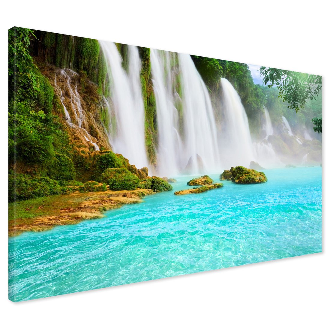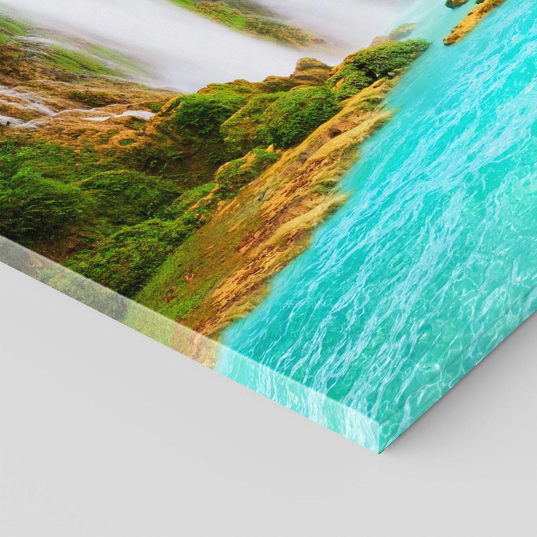 Obraz na płótnie z motywem wodospad, woda, natura to kwintesencja estetyki i trwałości. Dzięki łatwemu montażowi i uniwersalnemu wzornictwu, czyni go idealnym wyborem zarówno do codziennego użytku, jak i na wyrafinowany prezent.