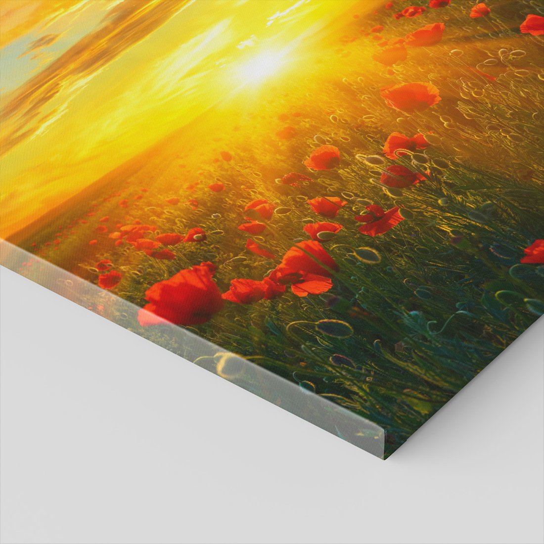 Obraz na płótnie - zachód słońca, kwiaty, pole