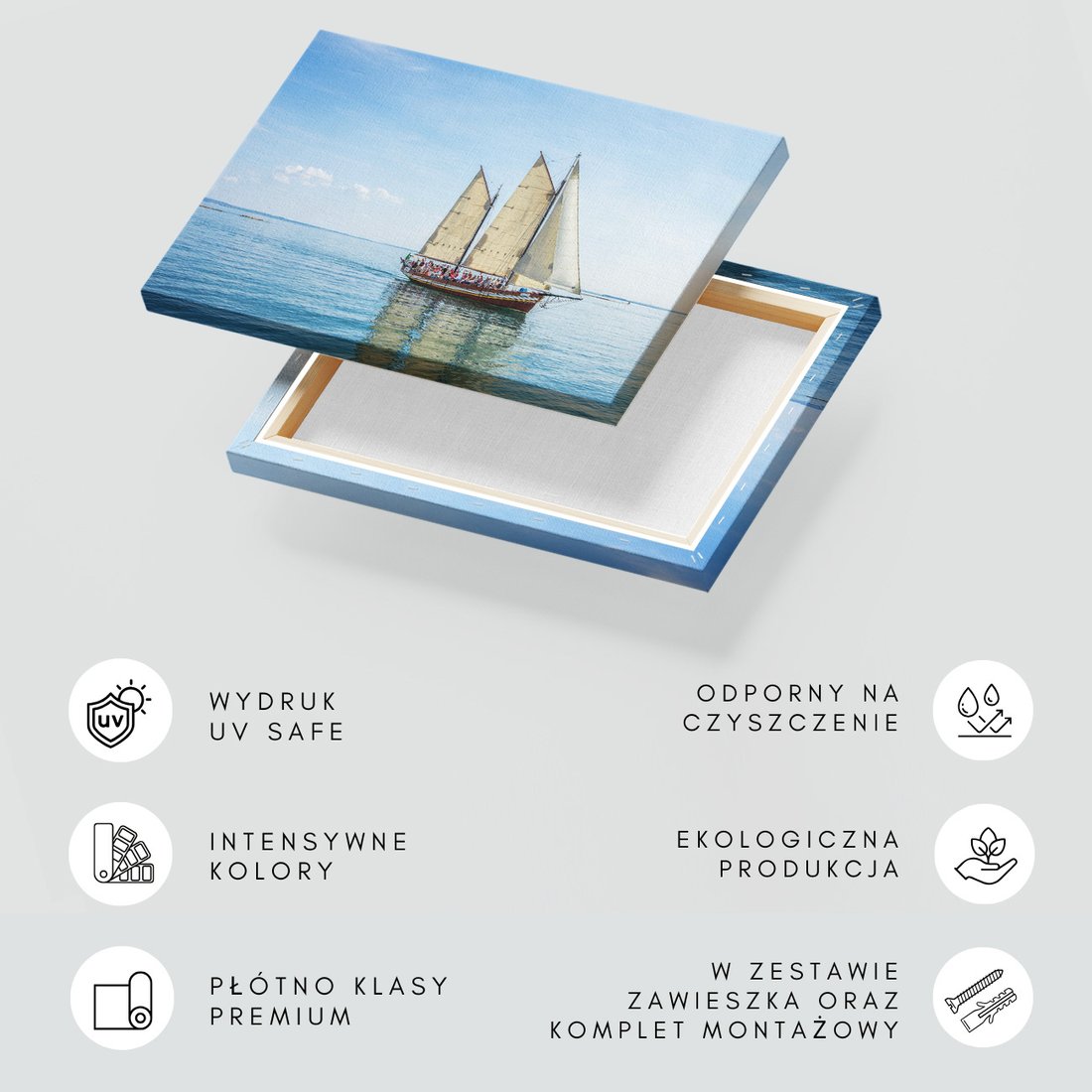 Obraz na płótnie z motywem żaglówka, morze, woda to kwintesencja estetyki i trwałości. Dzięki łatwemu montażowi i uniwersalnemu wzornictwu, czyni go idealnym wyborem zarówno do codziennego użytku, jak i na wyrafinowany prezent.