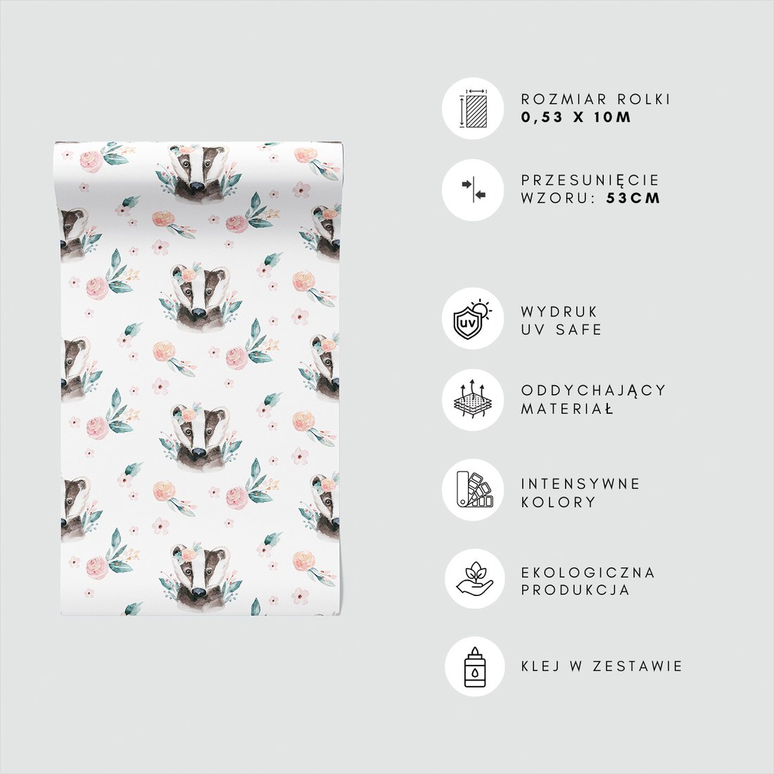 Odkryj piękno i funkcjonalność tapety z motywem borsuk, kwiaty, liście. To połączenie wyjątkowego wzornictwa z łatwością aplikacji, doskonałe do każdego pomieszczenia.