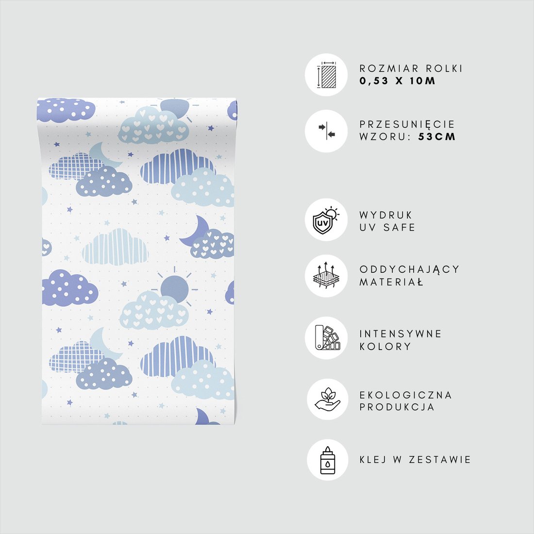 • Tapeta - dziecięca, chmury, gwiazdy, księżyc