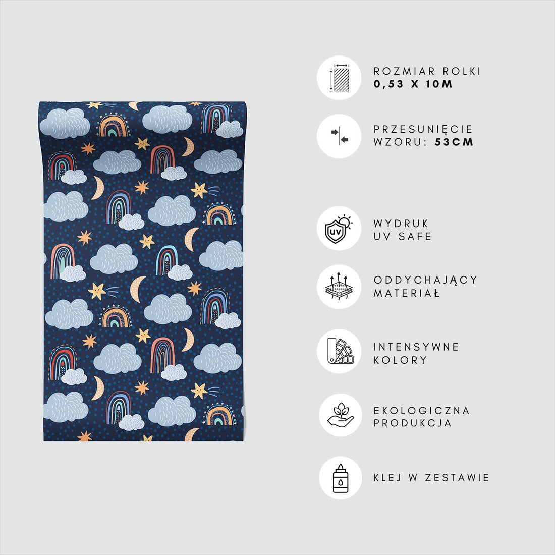 • Tapeta - dziecięca, chmury, gwiazdy, tęcze