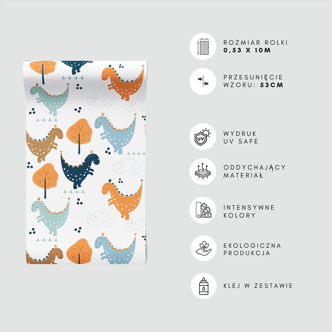 Odkryj piękno i funkcjonalność tapety z motywem dziecięca, dinozaury, drzewa, chmury. To połączenie wyjątkowego wzornictwa z łatwością aplikacji, doskonałe do każdego pomieszczenia.