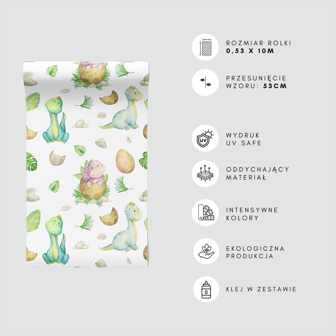Odkryj piękno i funkcjonalność tapety z motywem dziecięca, dinozaury, liście, kamienie. To połączenie wyjątkowego wzornictwa z łatwością aplikacji, doskonałe do każdego pomieszczenia.