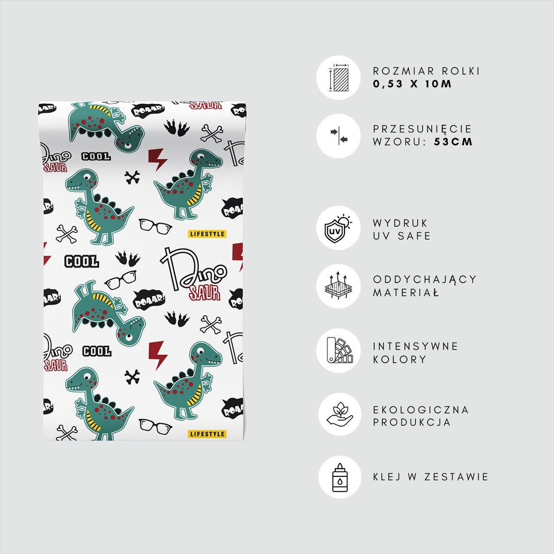 Odkryj piękno i funkcjonalność tapety z motywem dziecięca, dinozaury, okulary, napisy. To połączenie wyjątkowego wzornictwa z łatwością aplikacji, doskonałe do każdego pomieszczenia.