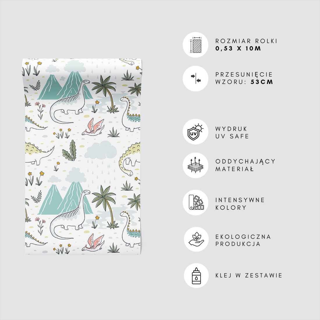 Odkryj piękno i funkcjonalność tapety z motywem dziecięca, dinozaury, palmy, góry. To połączenie wyjątkowego wzornictwa z łatwością aplikacji, doskonałe do każdego pomieszczenia.