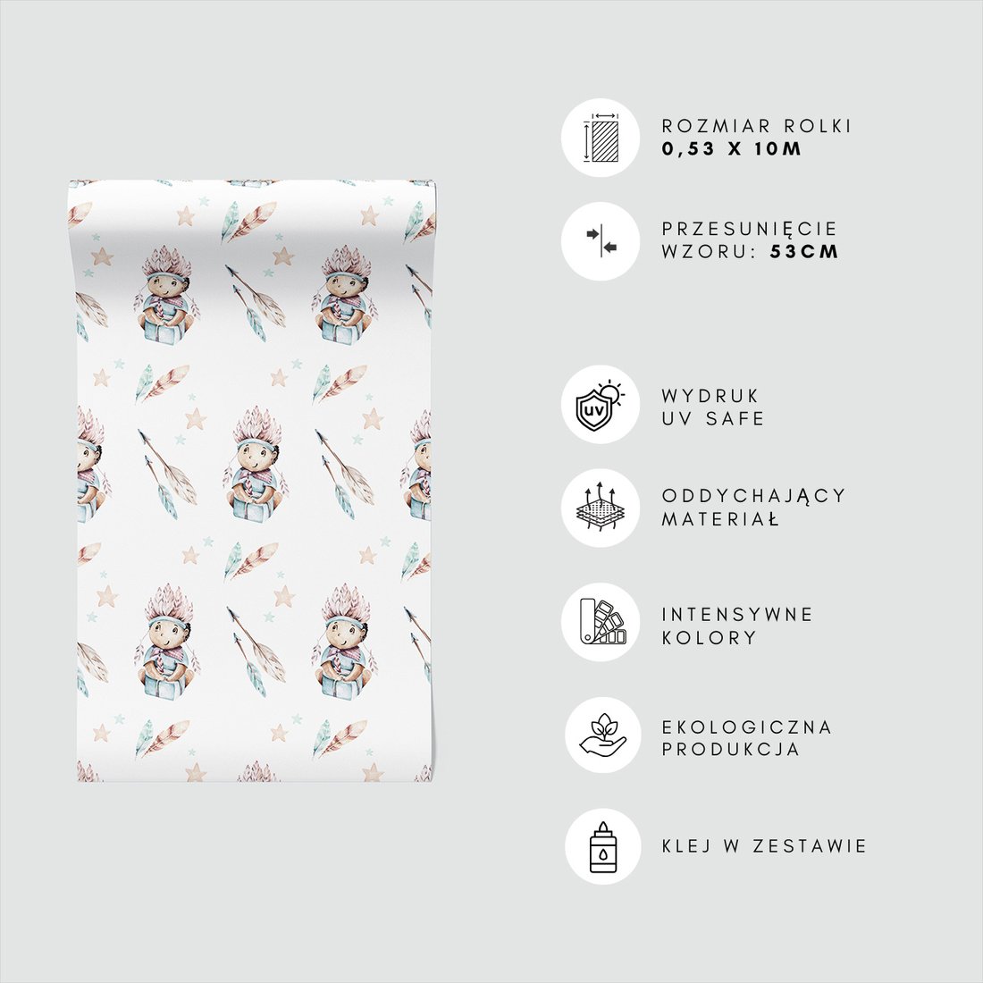 Odkryj piękno i funkcjonalność tapety z motywem dziecięca, indianin, pióra, gwiazdy. To połączenie wyjątkowego wzornictwa z łatwością aplikacji, doskonałe do każdego pomieszczenia.