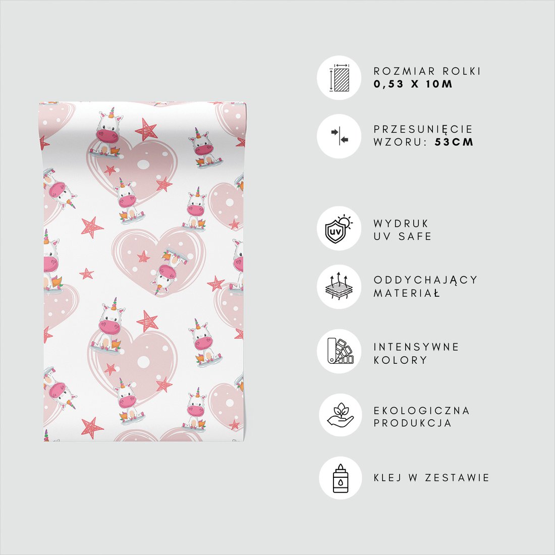 Tapeta - dziecięca, jednorożce, serca, gwiazdy