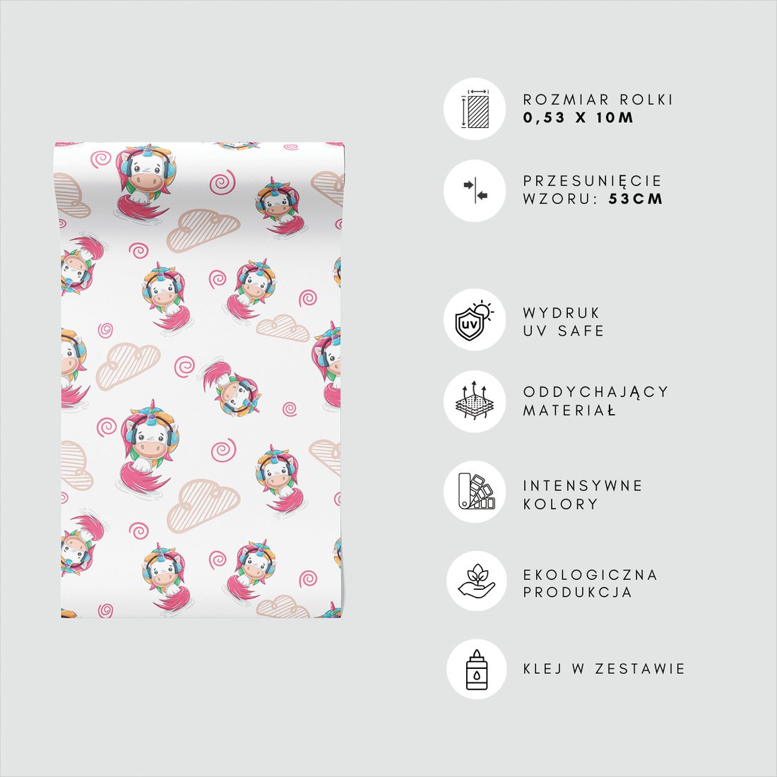 - Tapeta - dziecięca, jednorożec, chmury, spirala