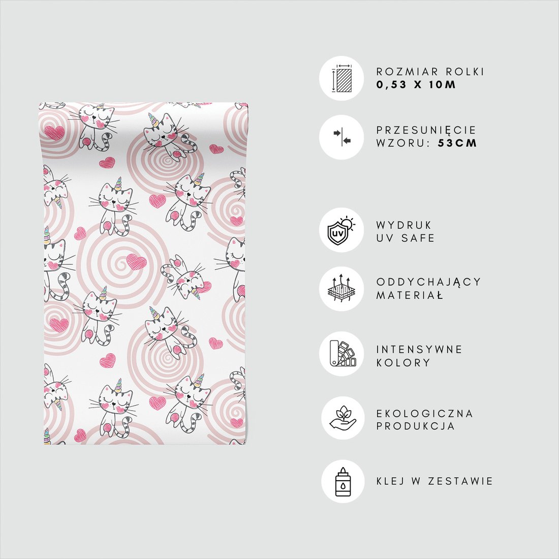 Odkryj piękno i funkcjonalność tapety z motywem dziecięca, koty, jednorożce, serca. To połączenie wyjątkowego wzornictwa z łatwością aplikacji, doskonałe do każdego pomieszczenia.