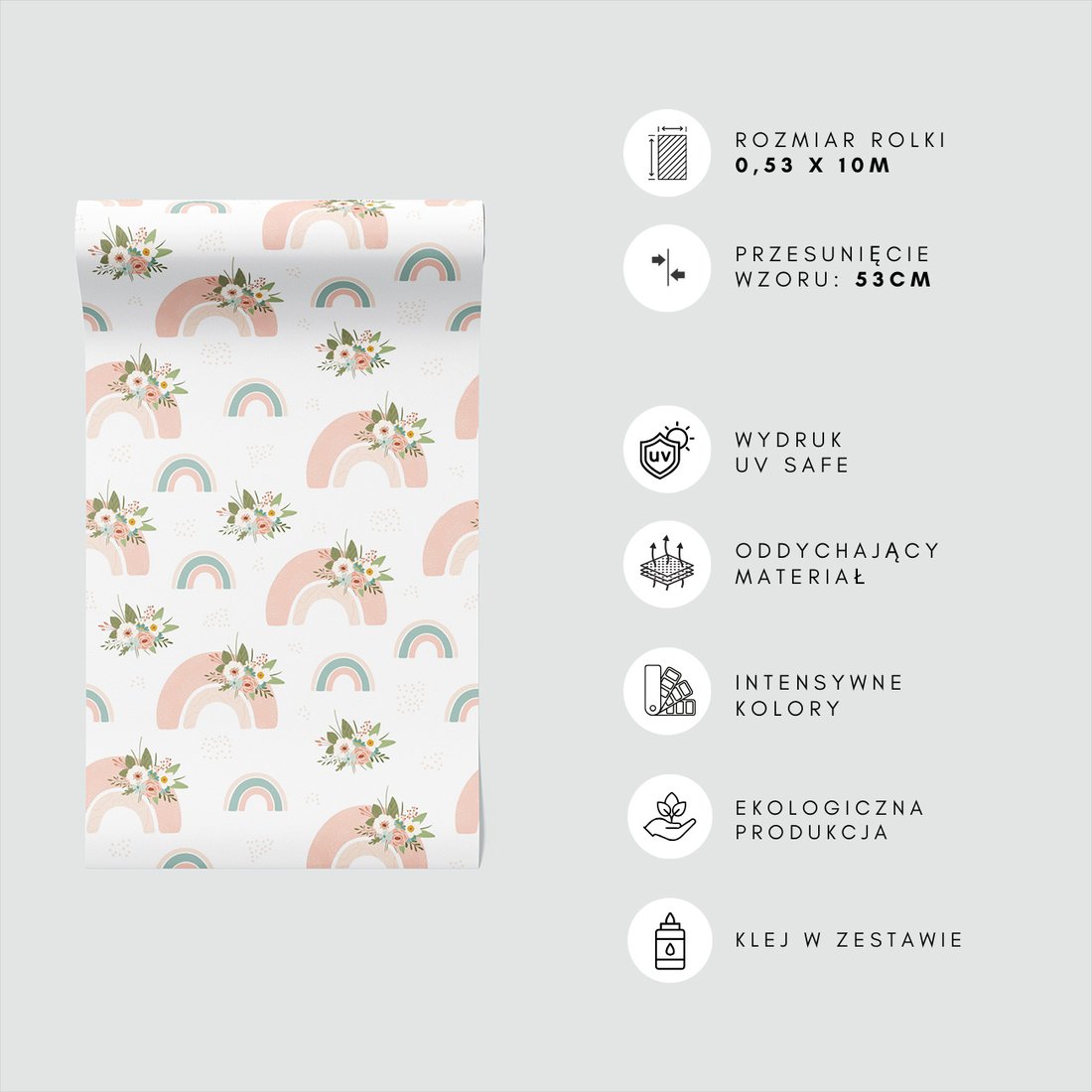 • Tapeta - dziecięca, kwiaty, tęcza,