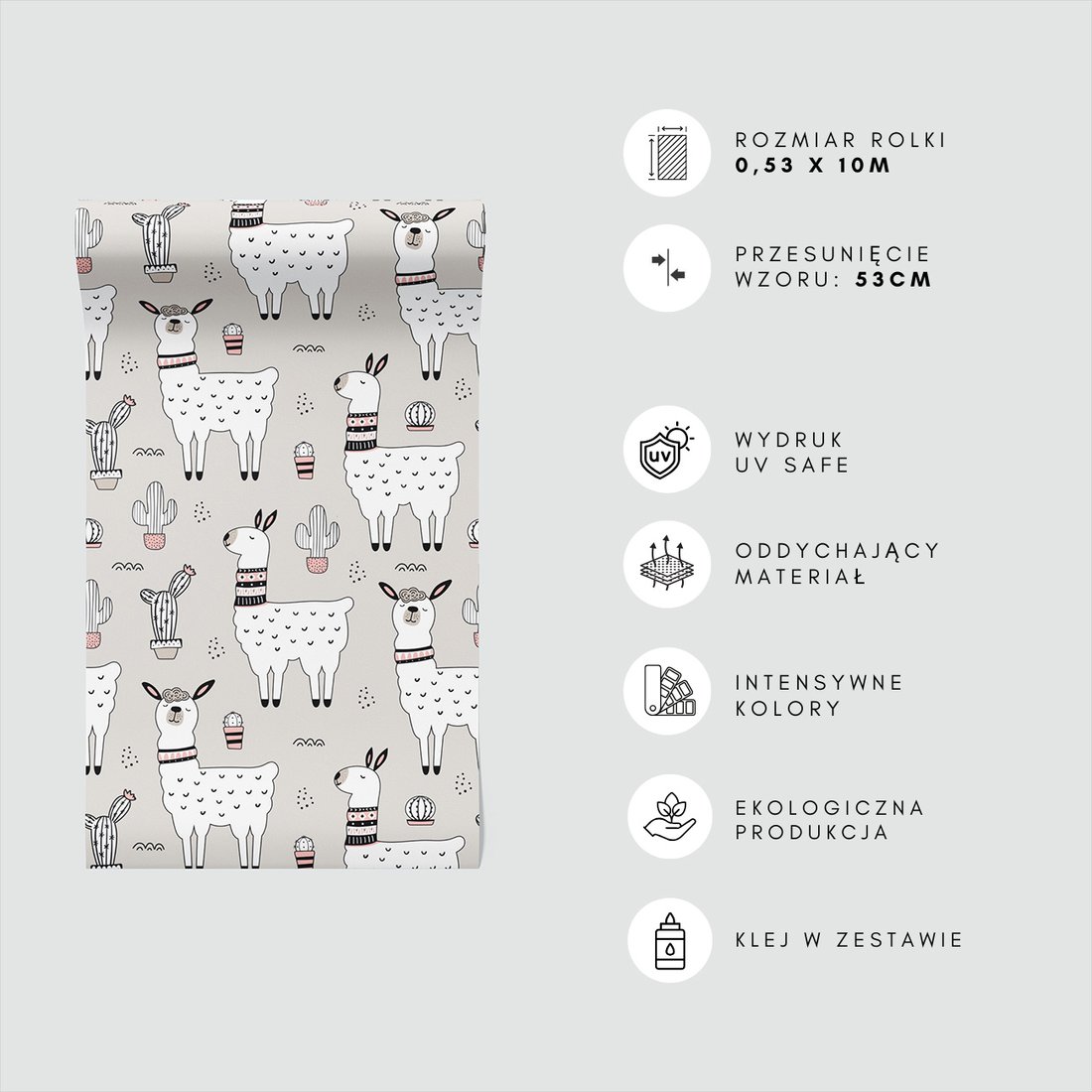 Odkryj piękno i funkcjonalność tapety z motywem dziecięca, lama, kaktus, wzór. To połączenie wyjątkowego wzornictwa z łatwością aplikacji, doskonałe do każdego pomieszczenia.