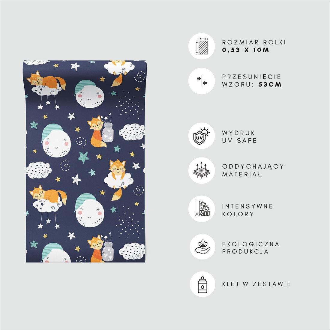 Tapeta - dziecięca, lis, chmura, gwiazda