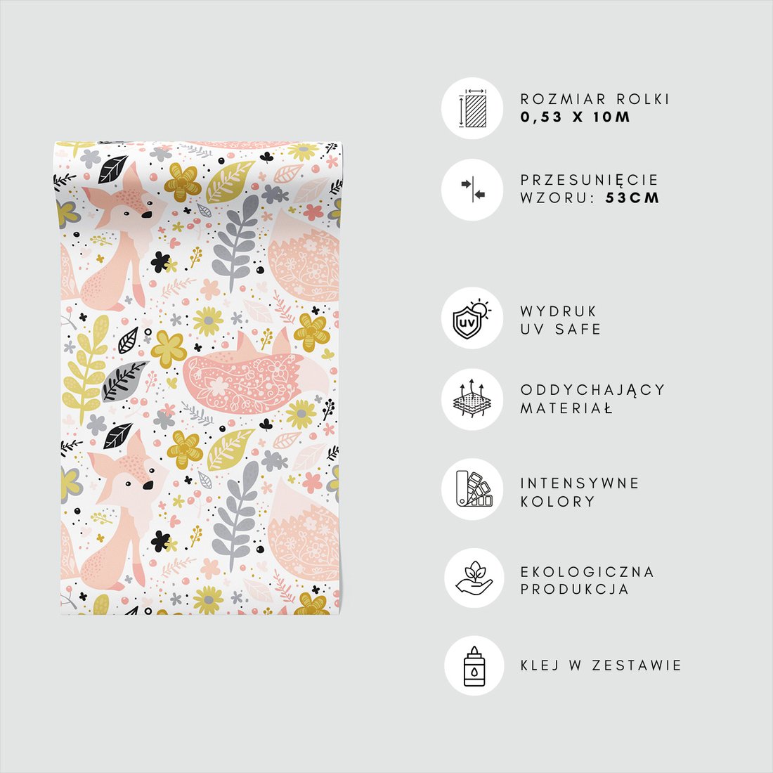 Odkryj piękno i funkcjonalność tapety z motywem dziecięca, lis, kwiaty, liście. To połączenie wyjątkowego wzornictwa z łatwością aplikacji, doskonałe do każdego pomieszczenia.