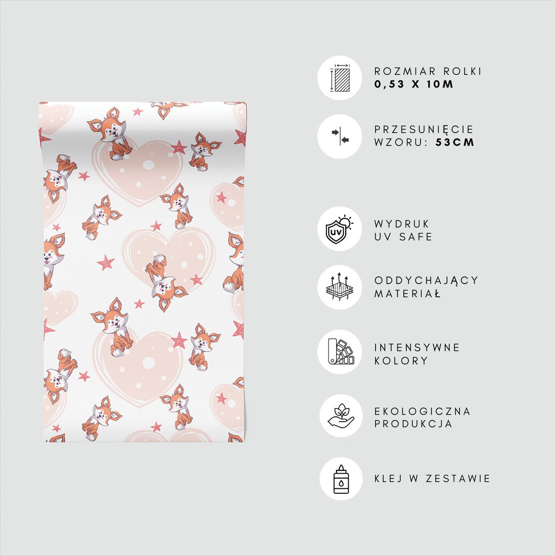 Tapeta - dziecięca, lisy, serca, gwiazdy