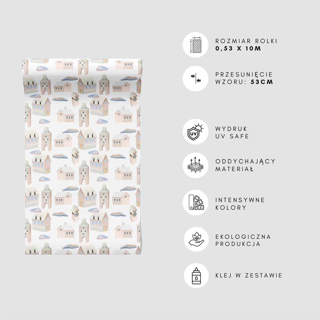 Odkryj piękno i funkcjonalność tapety z motywem dziecięca, miasto, budynki, chmury. To połączenie wyjątkowego wzornictwa z łatwością aplikacji, doskonałe do każdego pomieszczenia.