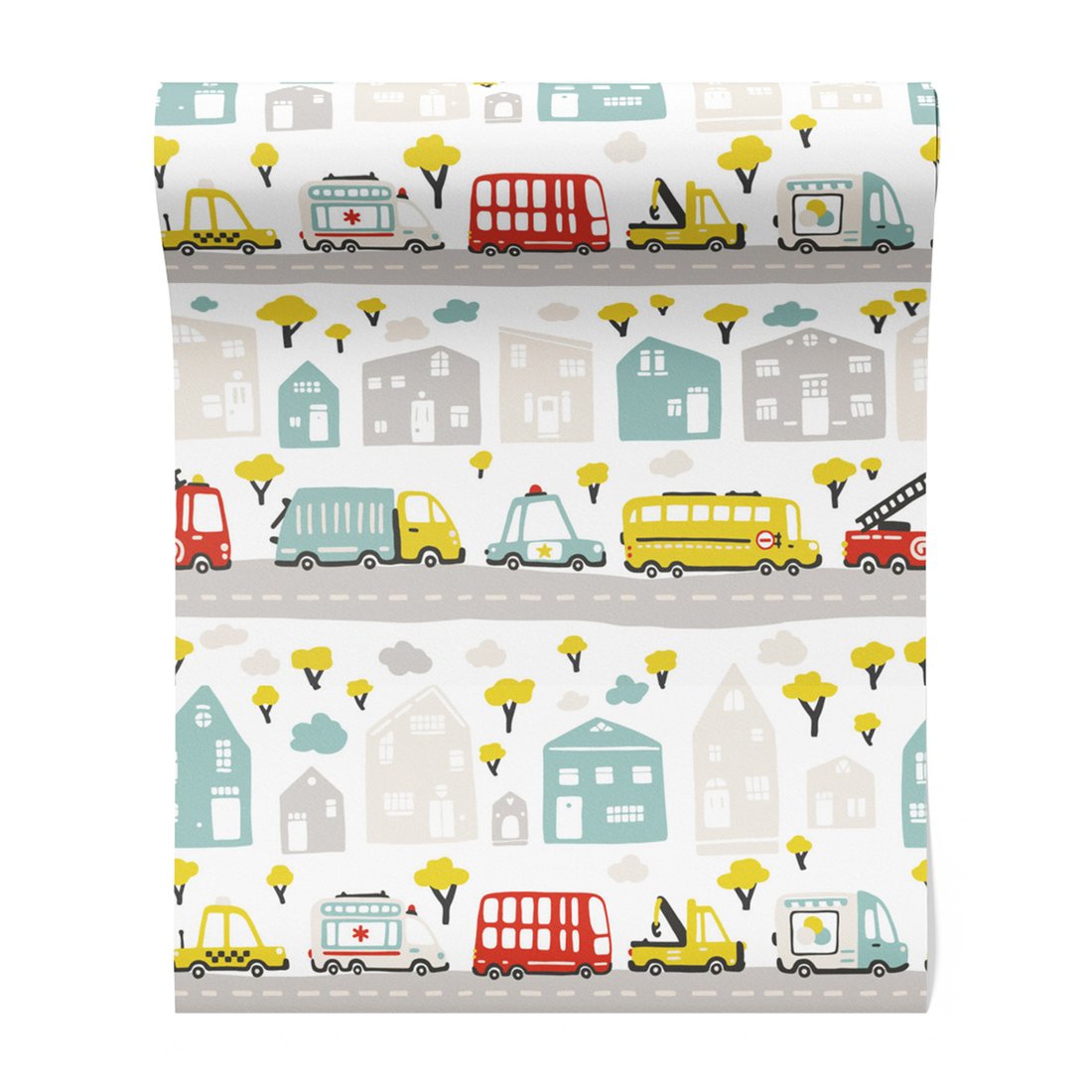Odkryj piękno i funkcjonalność tapety z motywem dziecięca, miasto, pojazdy, drzewa. To połączenie wyjątkowego wzornictwa z łatwością aplikacji, doskonałe do każdego pomieszczenia.
