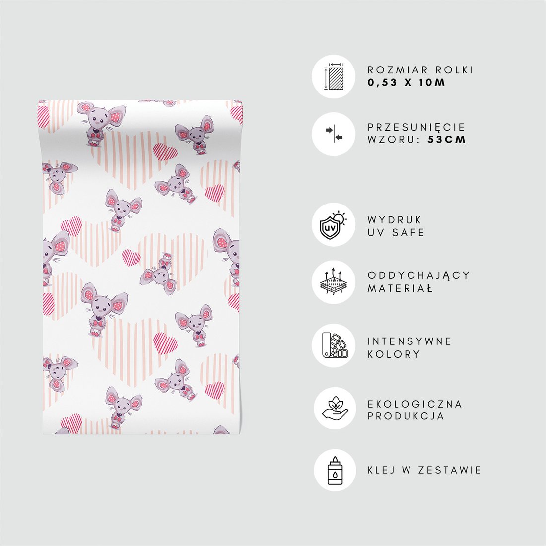 Odkryj piękno i funkcjonalność tapety z motywem dziecięca, myszka, serca, tło. To połączenie wyjątkowego wzornictwa z łatwością aplikacji, doskonałe do każdego pomieszczenia.