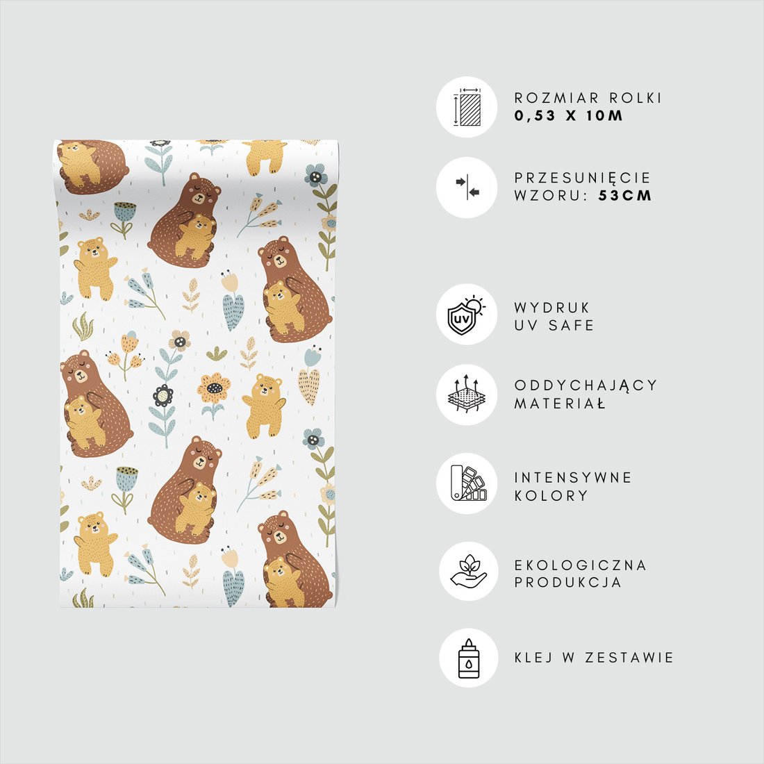 - Tapeta - dziecięca, niedźwiedź, matka, kwiaty