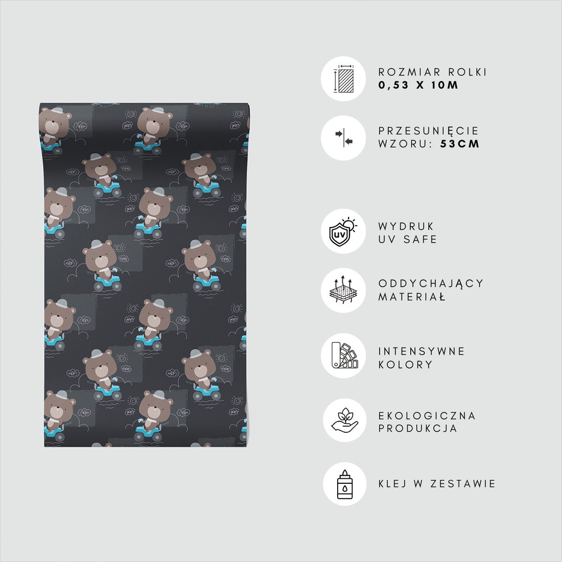 - Tapeta - dziecięca, niedźwiedź, pojazd, chmury