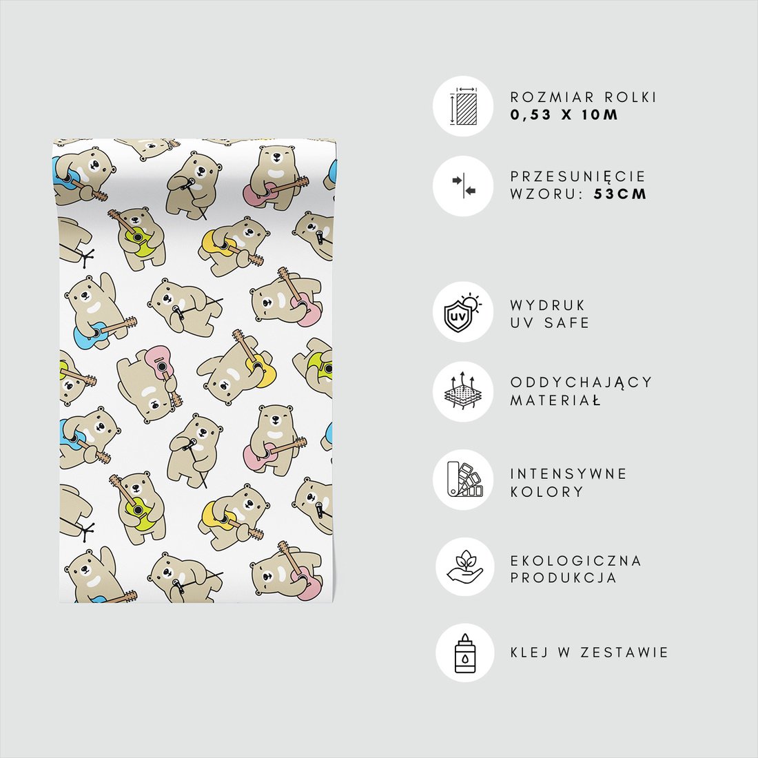 - Tapeta - dziecięca, niedźwiedzie, gitary, mikrofony