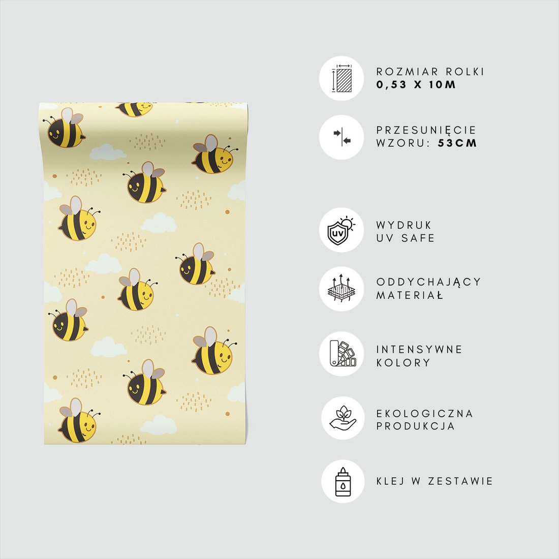 Odkryj piękno i funkcjonalność tapety z motywem dziecięca, pszczoła, chmura, kropka. To połączenie wyjątkowego wzornictwa z łatwością aplikacji, doskonałe do każdego pomieszczenia.