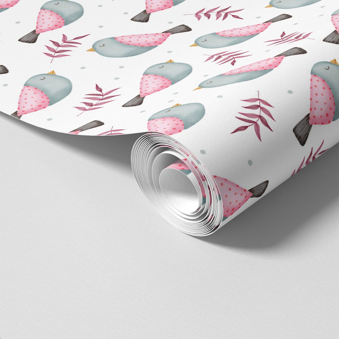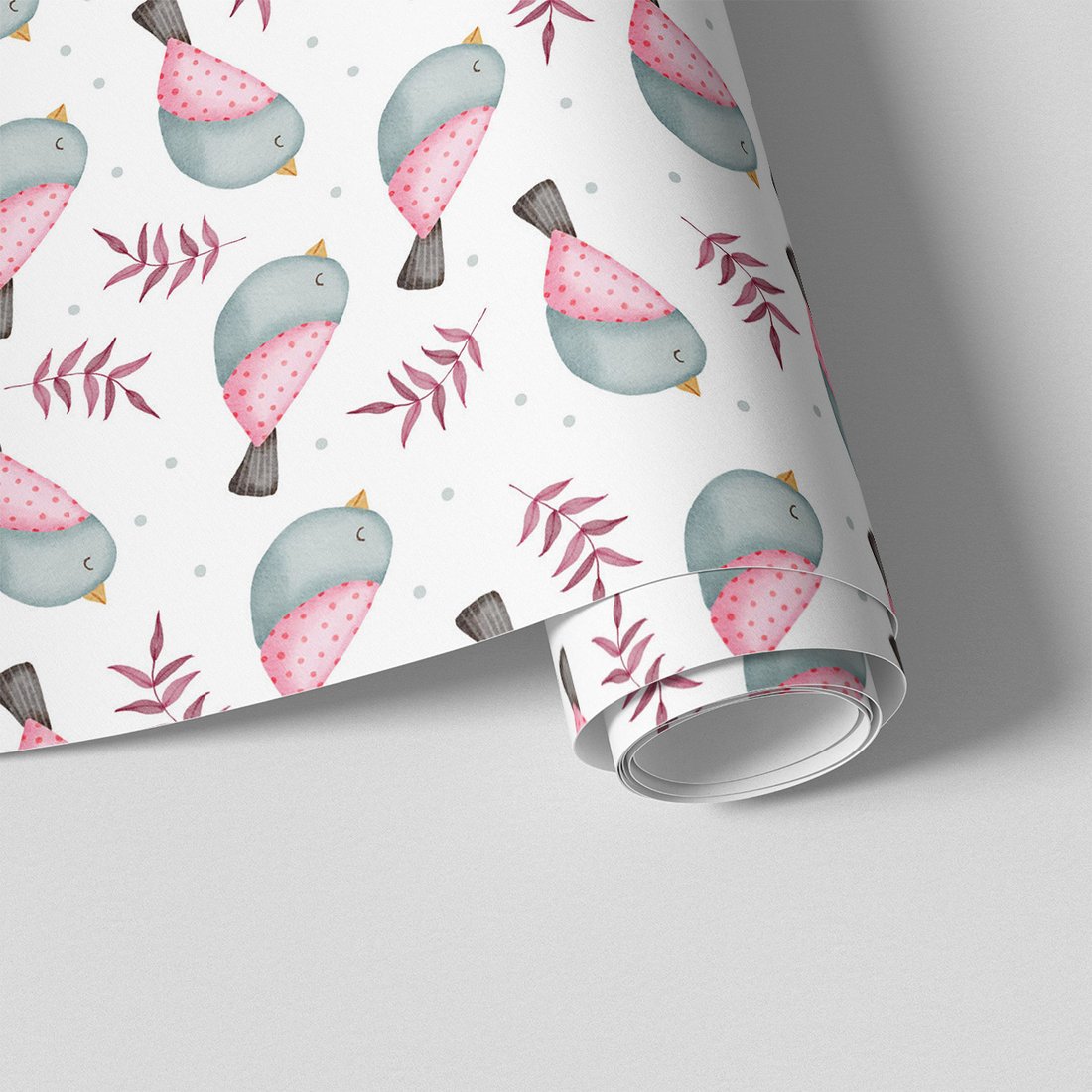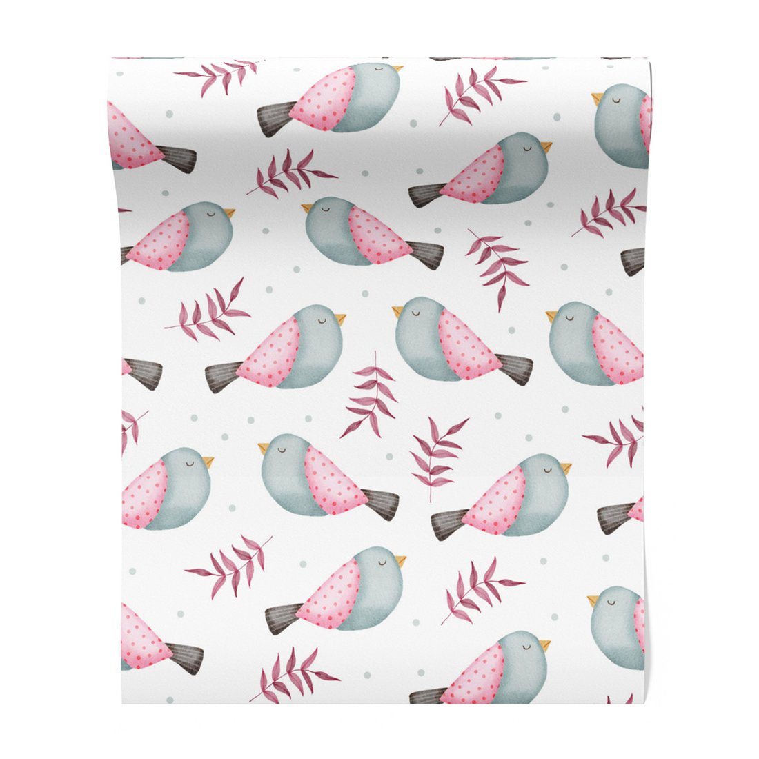- Tapeta - dziecięca, ptaki, liście, kropki