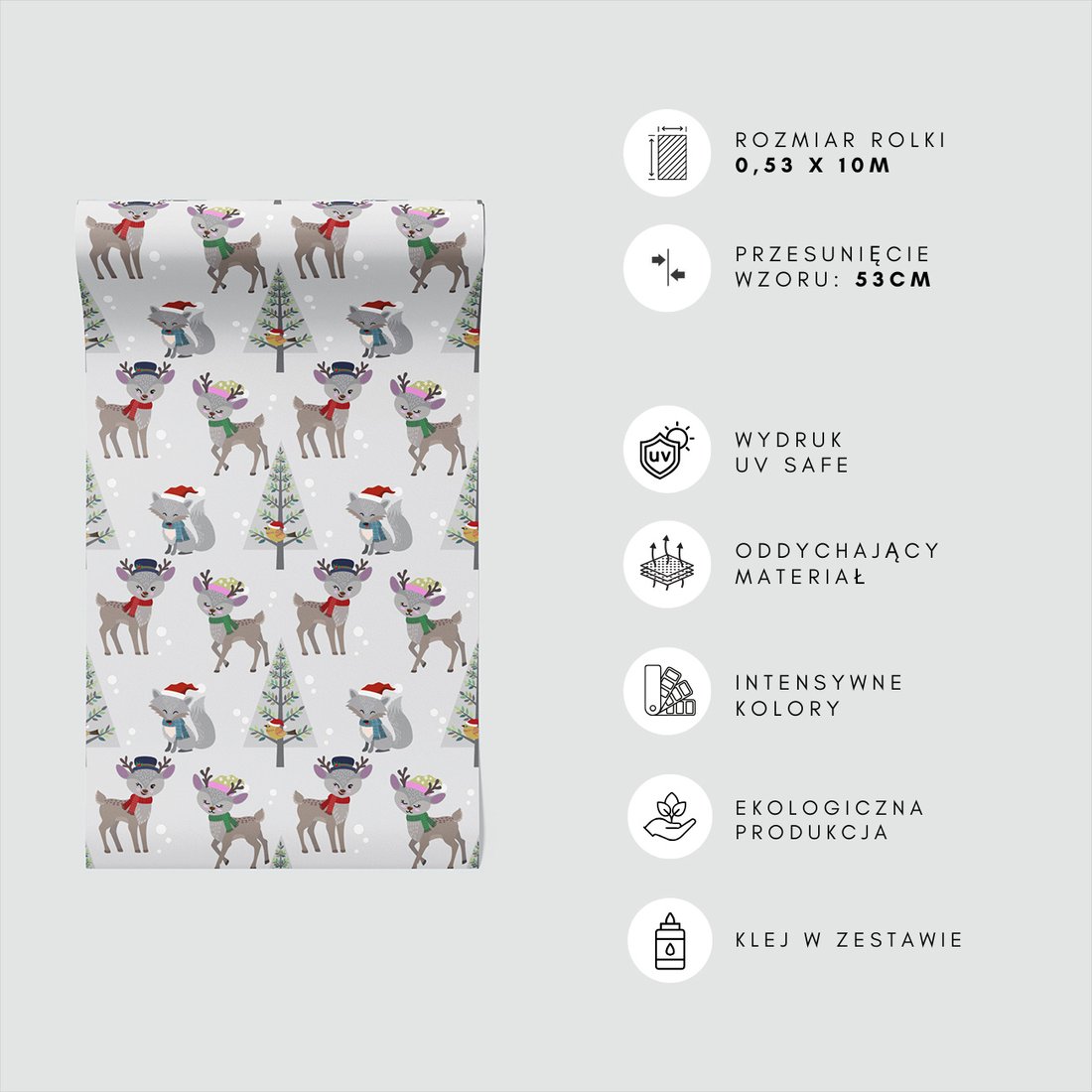 - Tapeta - dziecięca, renifer, lis, drzewo