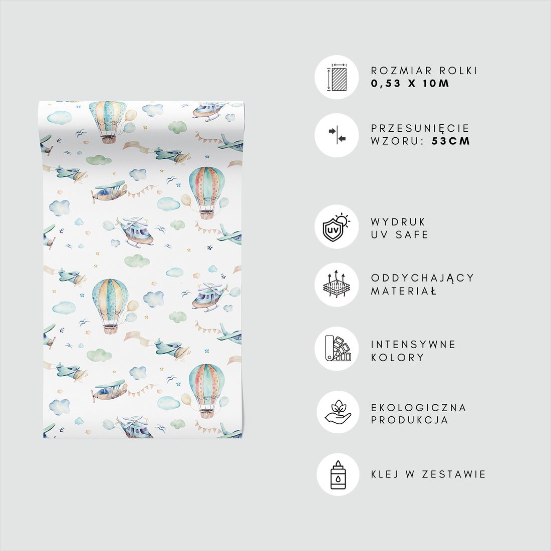Odkryj piękno i funkcjonalność tapety z motywem dziecięca, samoloty, balony. To połączenie wyjątkowego wzornictwa z łatwością aplikacji, doskonałe do każdego pomieszczenia.