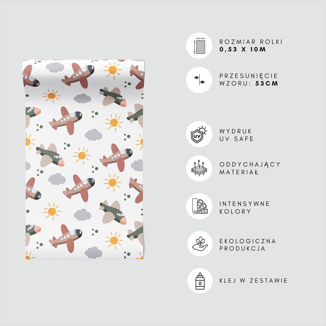 Odkryj piękno i funkcjonalność tapety z motywem dziecięca, samoloty, słońca, chmury. To połączenie wyjątkowego wzornictwa z łatwością aplikacji, doskonałe do każdego pomieszczenia.