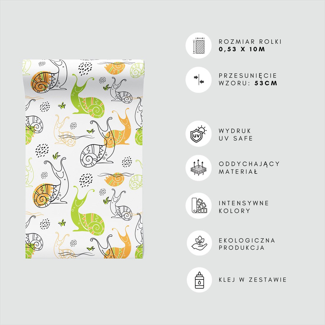 Tapeta - dziecięca, ślimaki, wzory, kropki