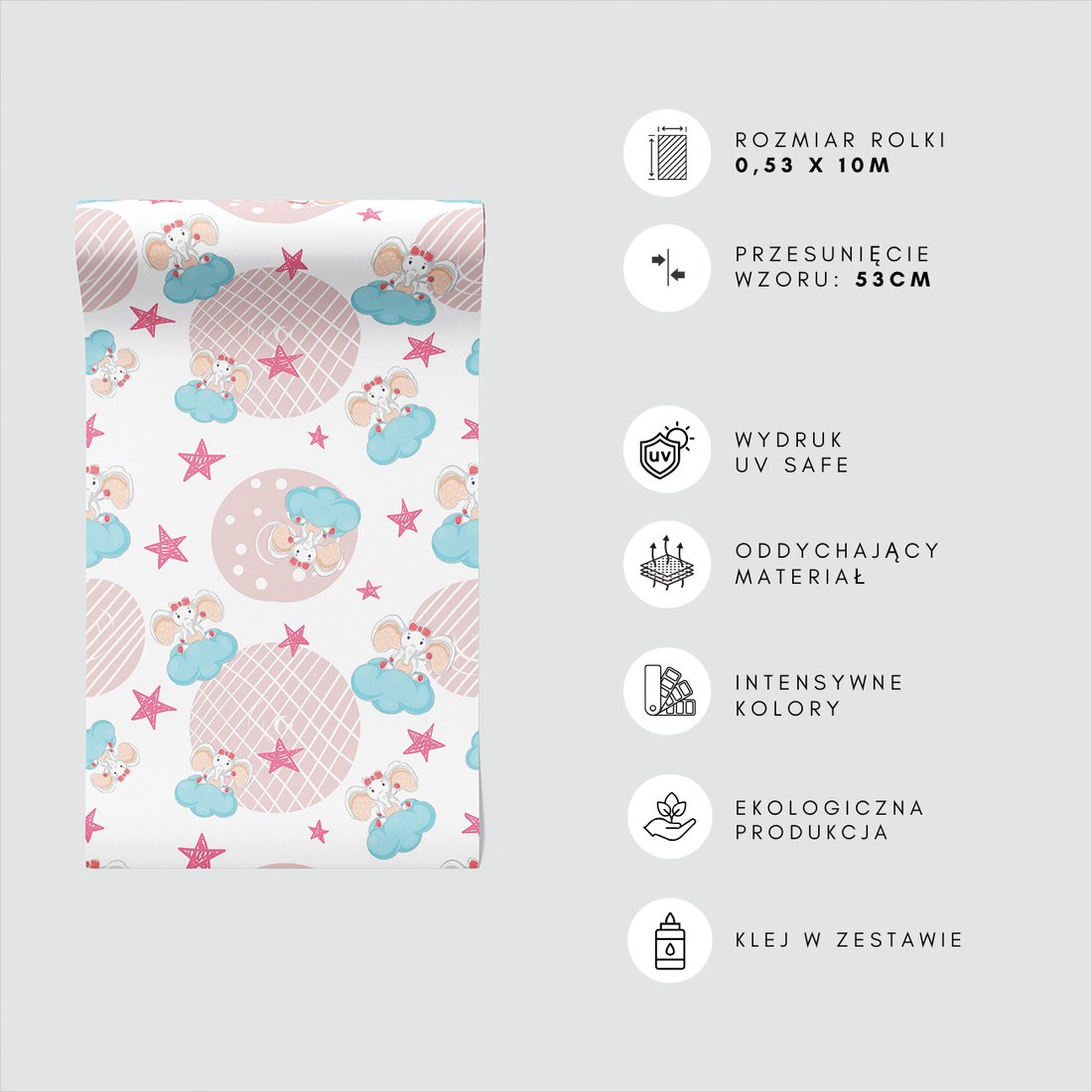 Odkryj piękno i funkcjonalność tapety z motywem dziecięca, słonie, chmury, gwiazdy. To połączenie wyjątkowego wzornictwa z łatwością aplikacji, doskonałe do każdego pomieszczenia.