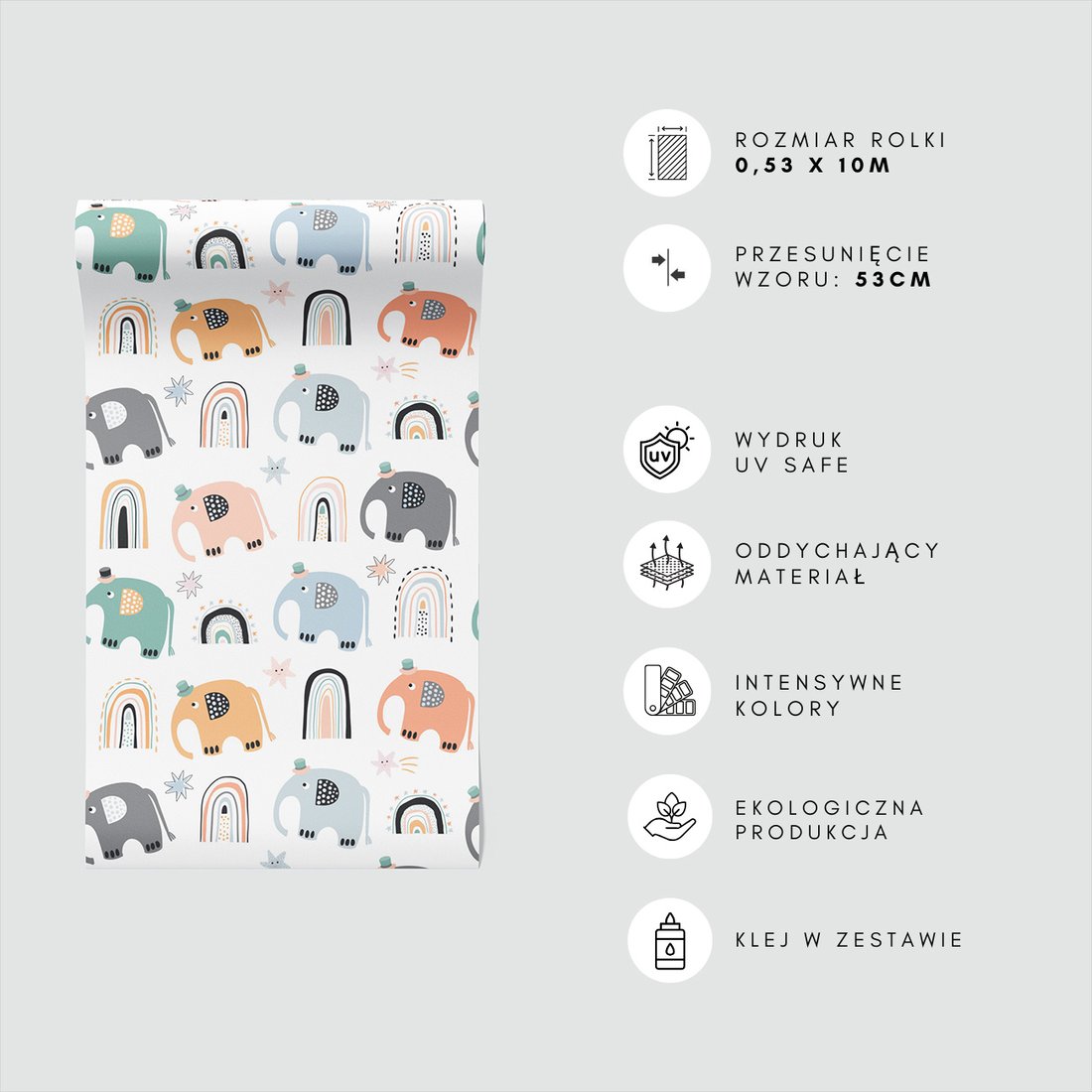 Odkryj piękno i funkcjonalność tapety z motywem dziecięca, słonie, tęcze, gwiazdy. To połączenie wyjątkowego wzornictwa z łatwością aplikacji, doskonałe do każdego pomieszczenia.