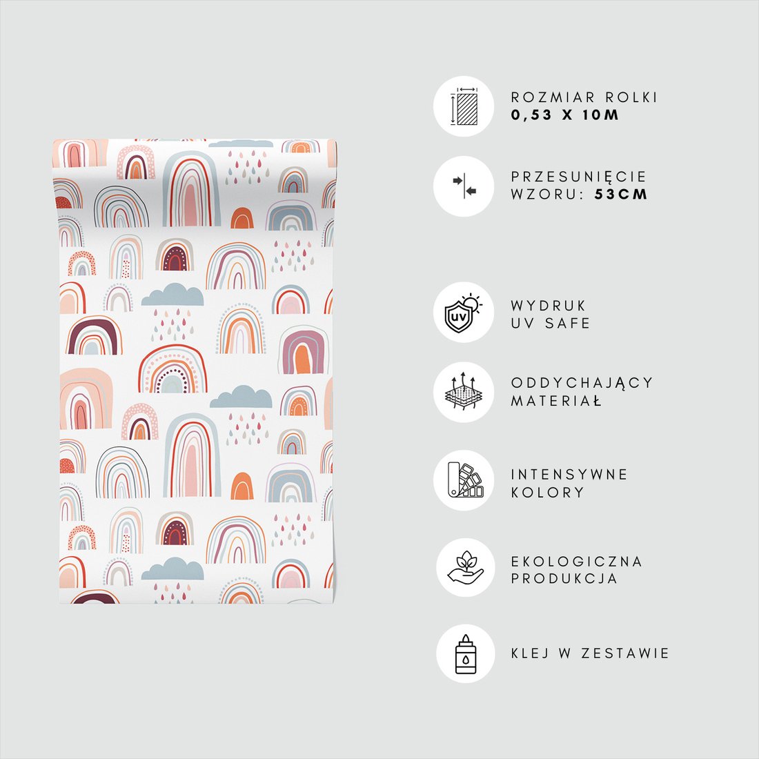 Odkryj piękno i funkcjonalność tapety z motywem dziecięca, tęcza, chmura, kropelki. To połączenie wyjątkowego wzornictwa z łatwością aplikacji, doskonałe do każdego pomieszczenia.