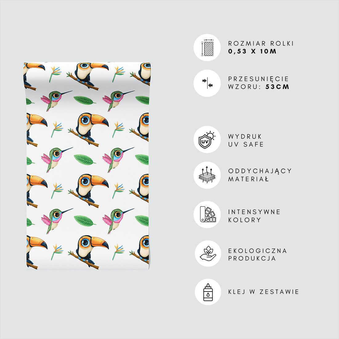 - Tapeta - dziecięca, tukany, kolibry, liście