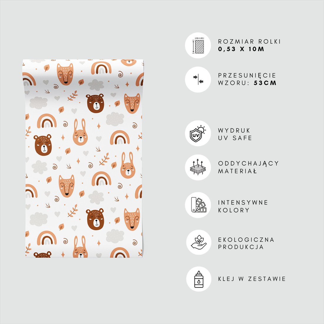- Tapeta - dziecięca, zwierzęta, chmury, liście