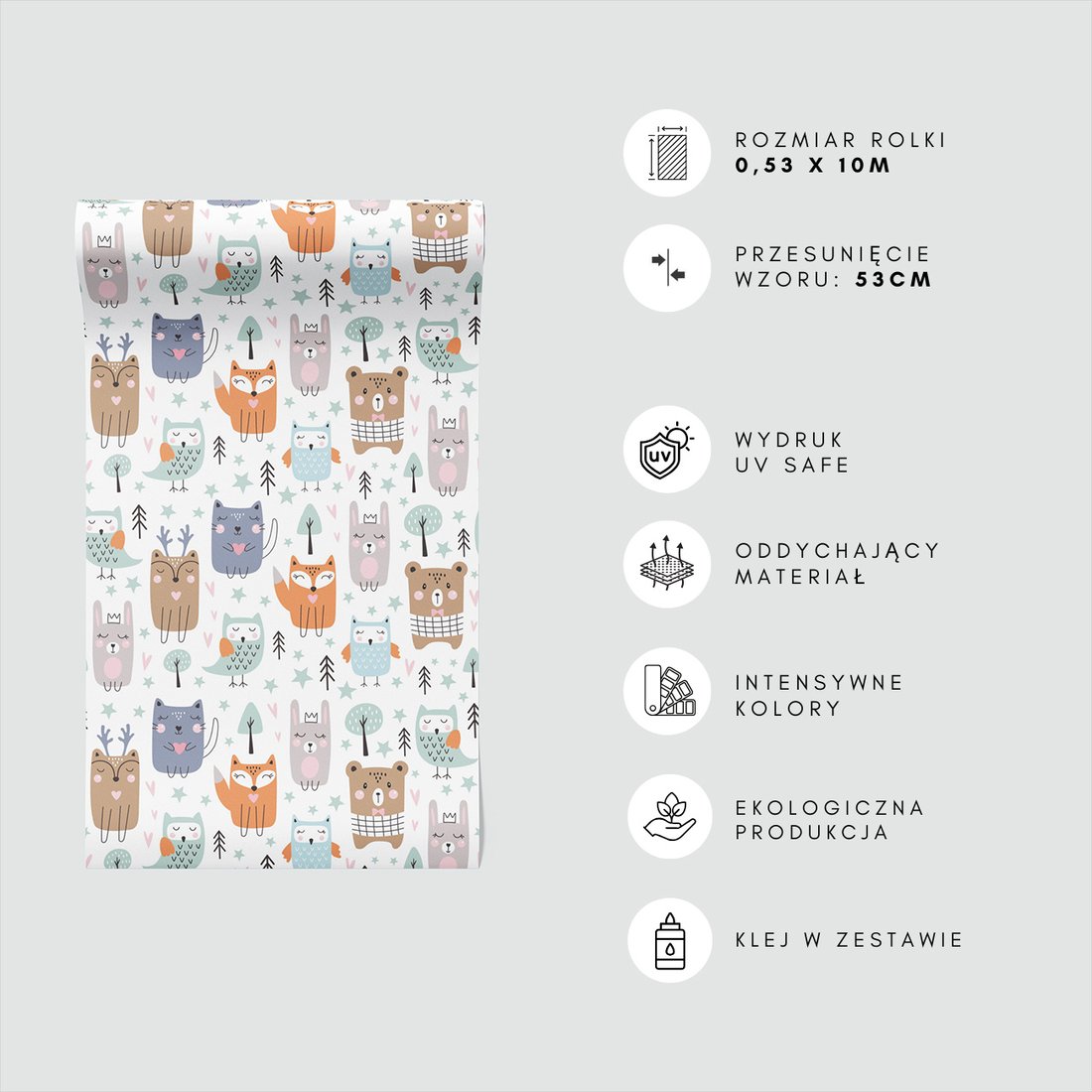 - Tapeta - dziecięca, zwierzęta, drzewa, gwiazdy