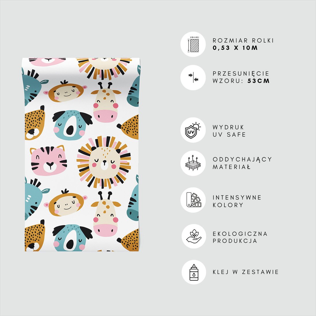 • Tapeta - dziecięca, zwierzęta, ilustracje, twarze