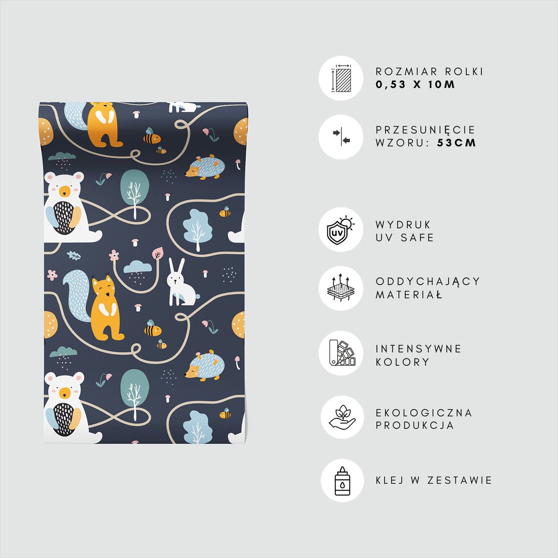 • Tapeta - dziecięca, zwierzęta, las, wzór