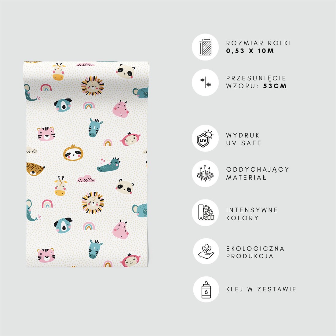 - Tapeta - dziecięca, zwierzęta, tęcza, wzór