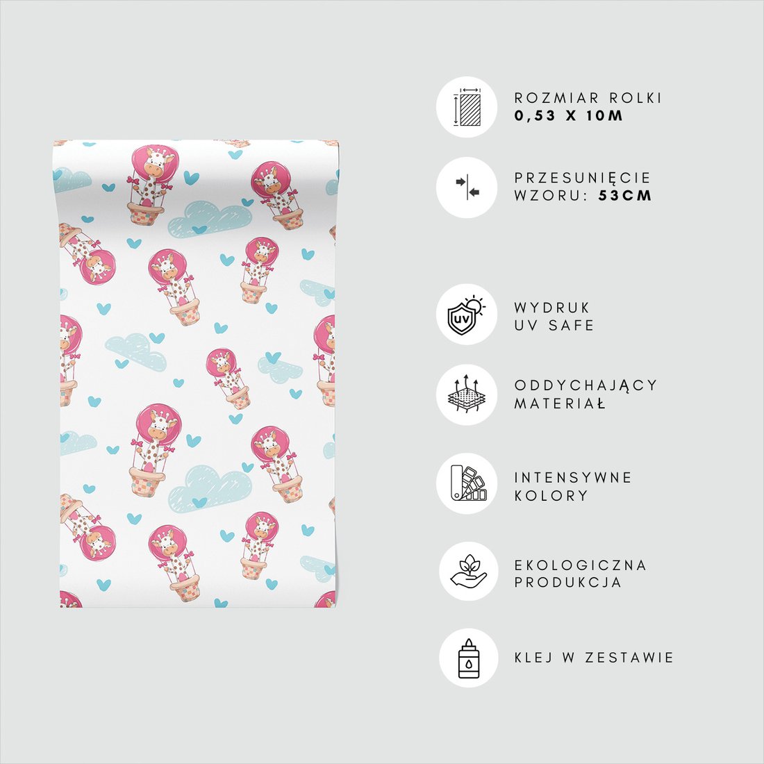 Odkryj piękno i funkcjonalność tapety z motywem dziecięca, żyrafa, balon, chmura. To połączenie wyjątkowego wzornictwa z łatwością aplikacji, doskonałe do każdego pomieszczenia.