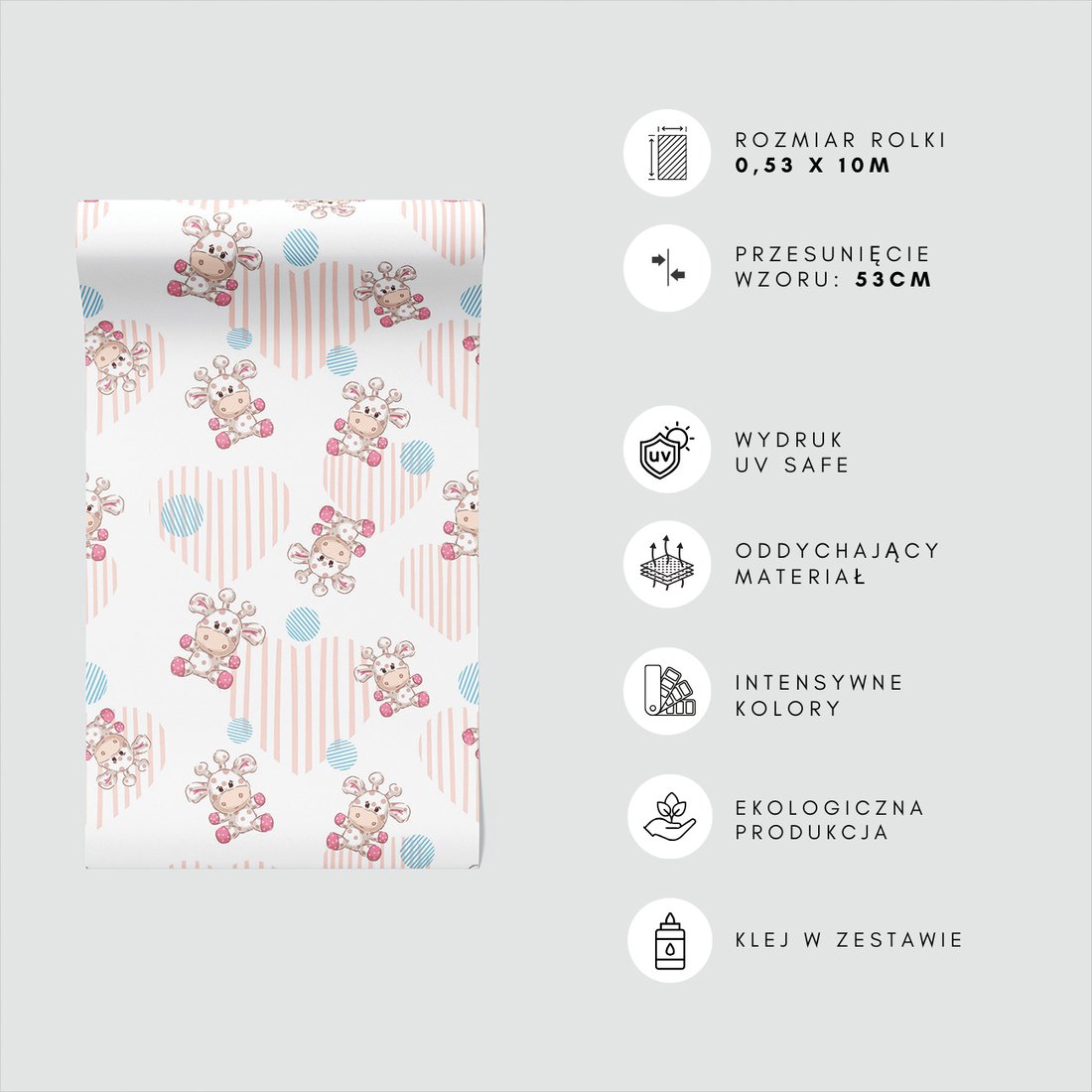 Odkryj piękno i funkcjonalność tapety z motywem dziecięca, żyrafa, serca, kropki. To połączenie wyjątkowego wzornictwa z łatwością aplikacji, doskonałe do każdego pomieszczenia.