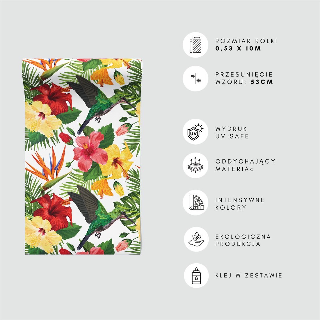 Odkryj piękno i funkcjonalność tapety z motywem kwiaty, koliber, liście. To połączenie wyjątkowego wzornictwa z łatwością aplikacji, doskonałe do każdego pomieszczenia.