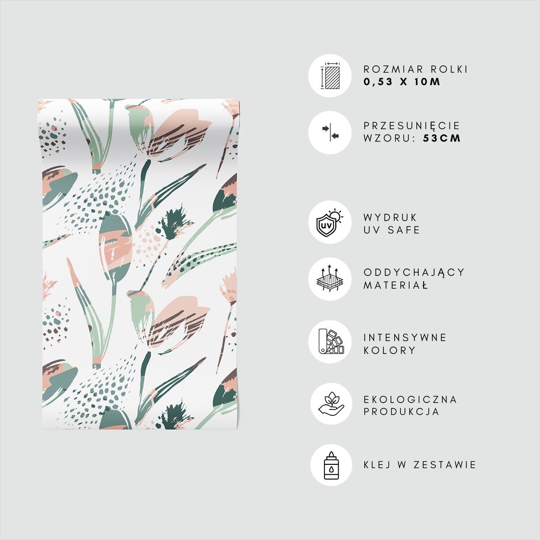 Odkryj piękno i funkcjonalność tapety z motywem kwiaty, liście, abstrakcja. To połączenie wyjątkowego wzornictwa z łatwością aplikacji, doskonałe do każdego pomieszczenia.