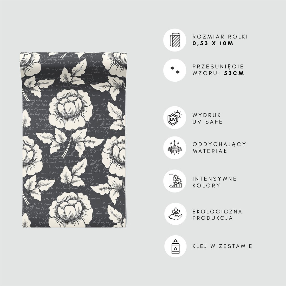 Odkryj piękno i funkcjonalność tapety z motywem kwiaty, ornamenty, pismo. To połączenie wyjątkowego wzornictwa z łatwością aplikacji, doskonałe do każdego pomieszczenia.