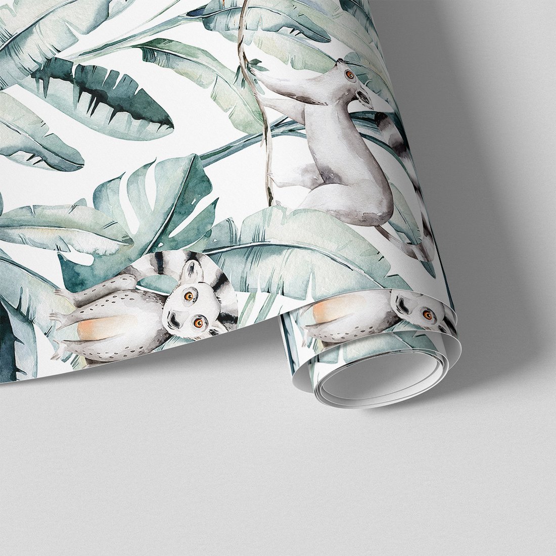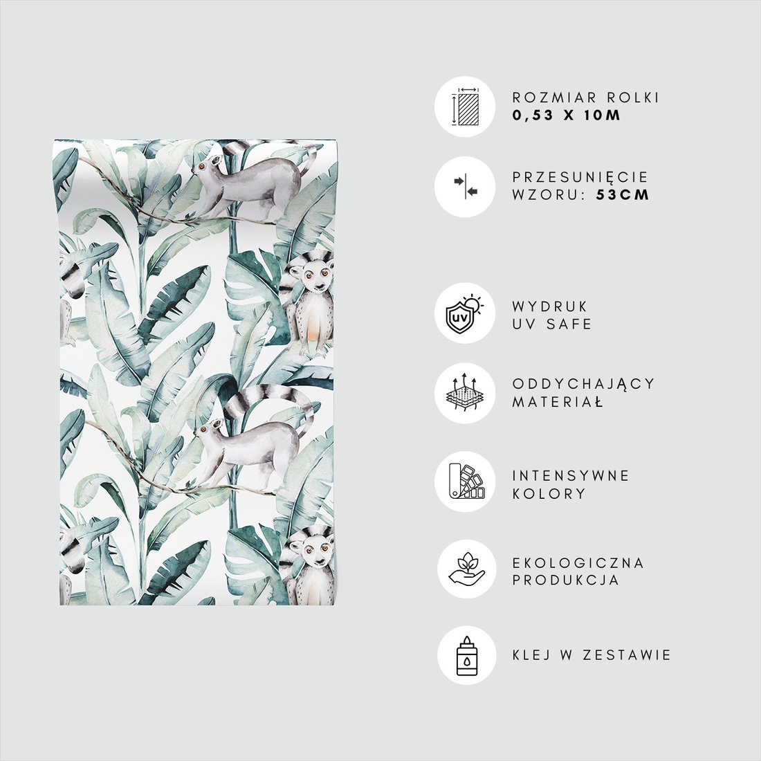 Odkryj piękno i funkcjonalność tapety z motywem lemur, liście, gałąź. To połączenie wyjątkowego wzornictwa z łatwością aplikacji, doskonałe do każdego pomieszczenia.