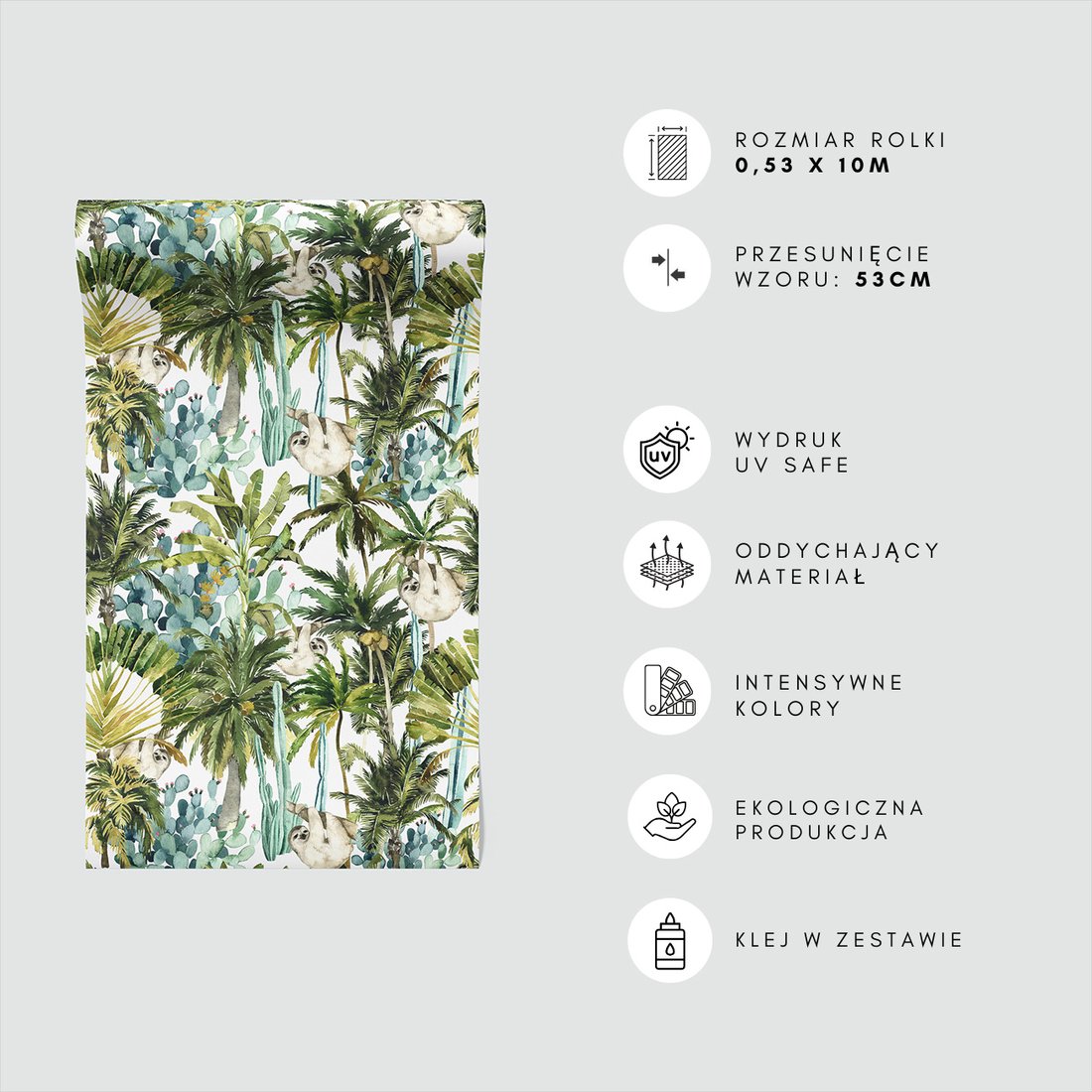 Odkryj piękno i funkcjonalność tapety z motywem leniwce, palmy, kaktusy. To połączenie wyjątkowego wzornictwa z łatwością aplikacji, doskonałe do każdego pomieszczenia.