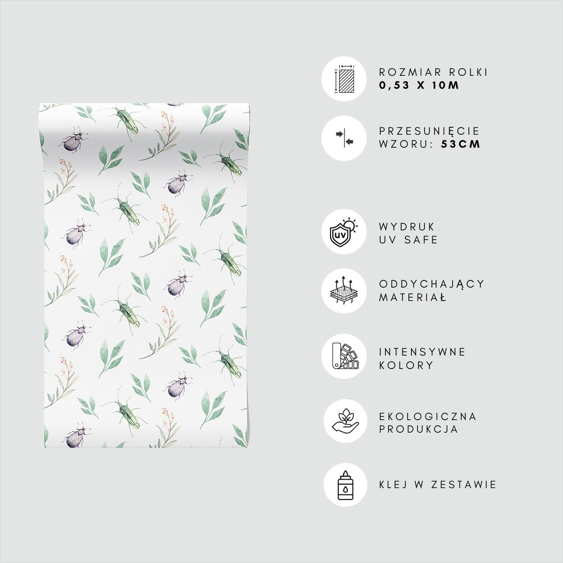 Odkryj piękno i funkcjonalność tapety z motywem liście, chrząszcze, natura. To połączenie wyjątkowego wzornictwa z łatwością aplikacji, doskonałe do każdego pomieszczenia.