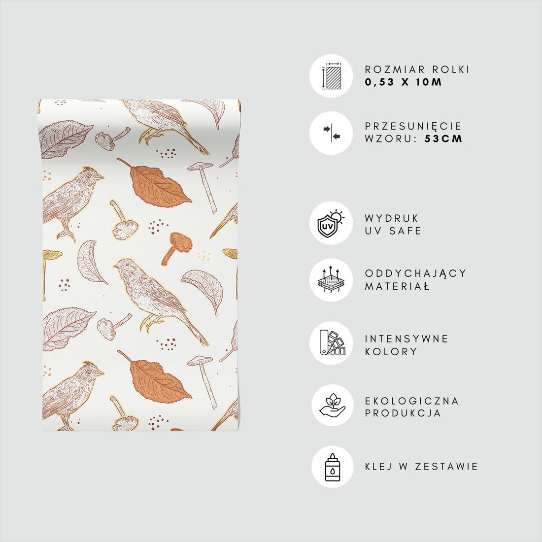 Odkryj piękno i funkcjonalność tapety z motywem liście, grzyby, ptaki. To połączenie wyjątkowego wzornictwa z łatwością aplikacji, doskonałe do każdego pomieszczenia.