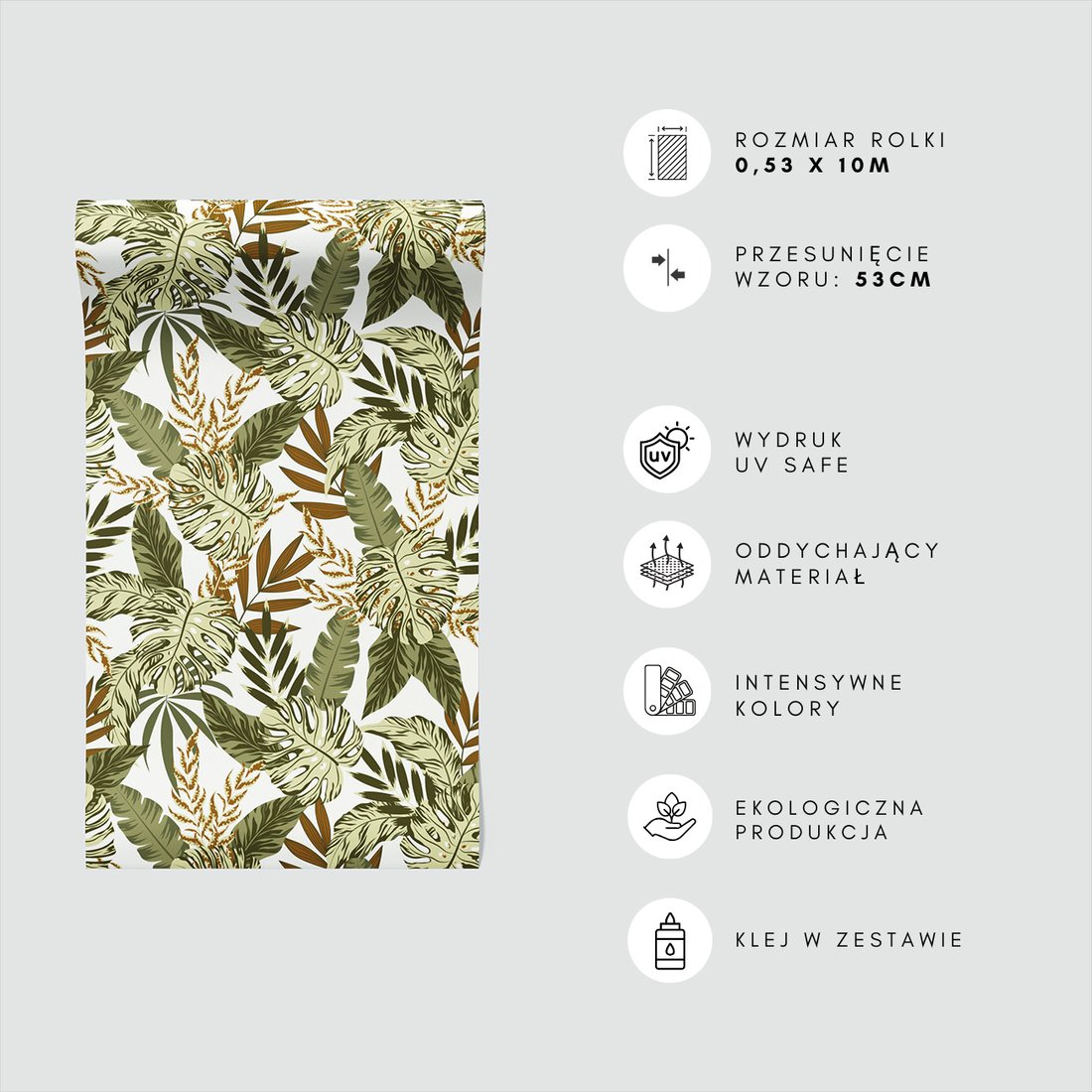 Odkryj piękno i funkcjonalność tapety z motywem liście, monstera, tropikalny. To połączenie wyjątkowego wzornictwa z łatwością aplikacji, doskonałe do każdego pomieszczenia.